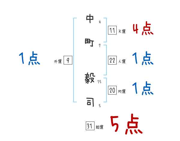 中町毅司さんの画数の鑑定結果