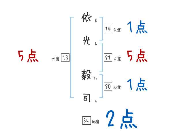 依光毅司さんの画数の鑑定結果