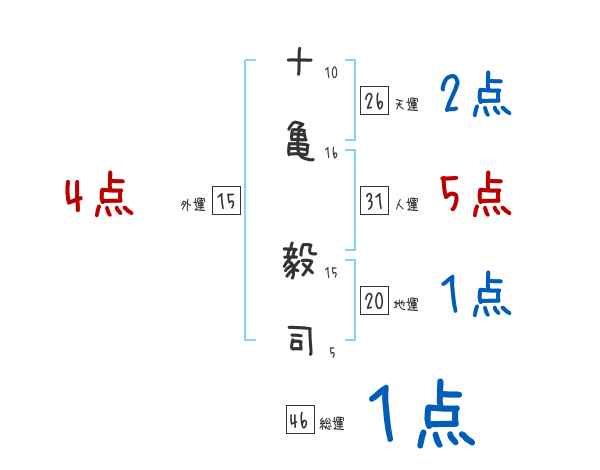 総運![]() | 十亀毅司さんの総運は46画の1つ星!迷走することが多く苦労するかも。目先のことにとらわれないように。 あなたの人生を表す1番重要な運勢です。生涯を通じて影響する総合運となり、主に50歳以降の晩年期に影響を及ぼします。 |