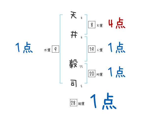 天井毅司さんの画数の鑑定結果