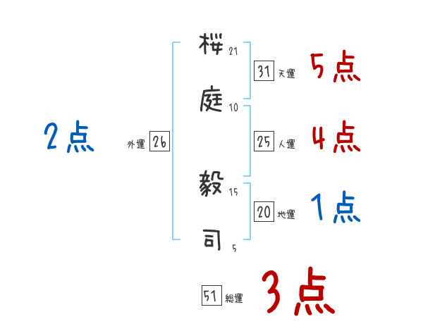 桜庭毅司さんの画数の鑑定結果