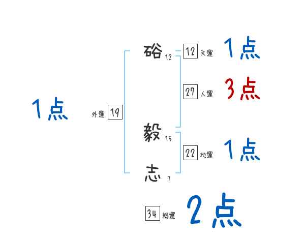 硲毅志さんの画数の鑑定結果
