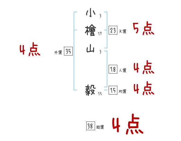 小檜山毅さんの画数の鑑定結果