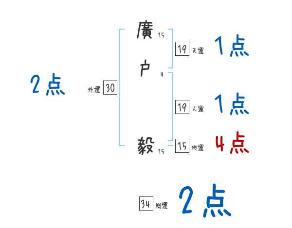 廣戸毅さんの画数の鑑定結果