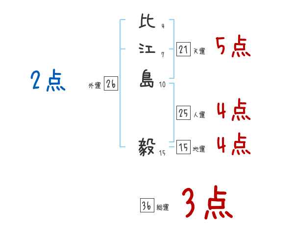 外運![]() | 比江島毅さんの外運は26画の2つ星!波瀾万丈かも。信頼できる人を大事にしましょう。 生活面を象徴する運勢です。外部から受ける影響力を表し、結婚運、家庭運や職場、環境への順応性を表します。 |