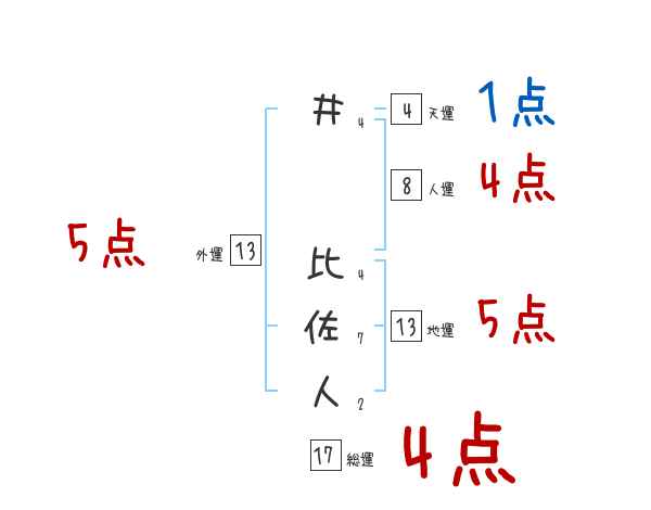 井比佐人さんの画数の鑑定結果