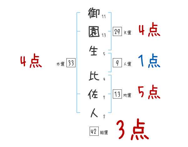 御園生比佐人さんの画数の鑑定結果