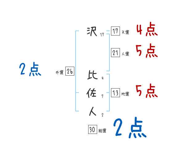 沢比佐人さんの画数の鑑定結果