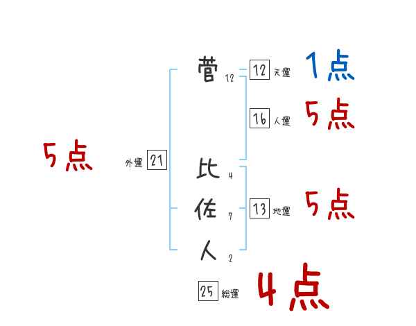 菅比佐人さんの画数の鑑定結果