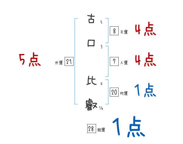 古口比叡さんの画数の鑑定結果