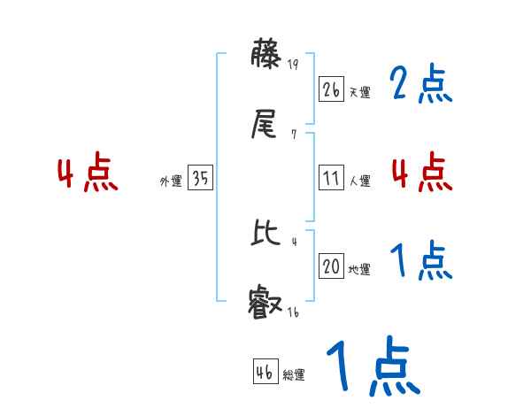 藤尾比叡さんの画数の鑑定結果