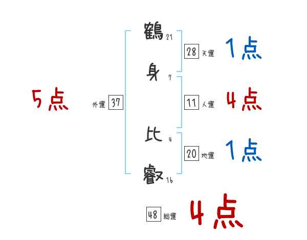 鶴身比叡さんの画数の鑑定結果