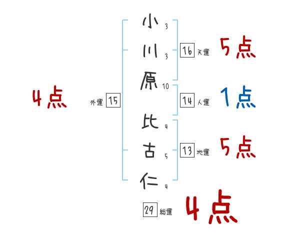 小川原比古仁さんの画数の鑑定結果