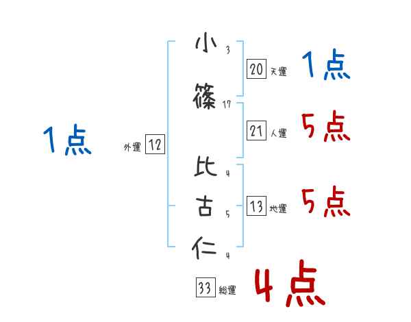 小篠比古仁さんの画数の鑑定結果
