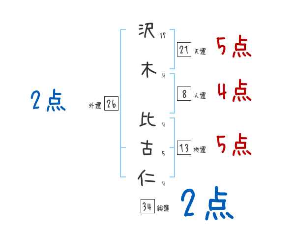 総運![]() | 沢木比古仁さんの総運は34画の2つ星!独創性に優れるが、自尊心が強く災難に注意しましょう。 あなたの人生を表す1番重要な運勢です。生涯を通じて影響する総合運となり、主に50歳以降の晩年期に影響を及ぼします。 |