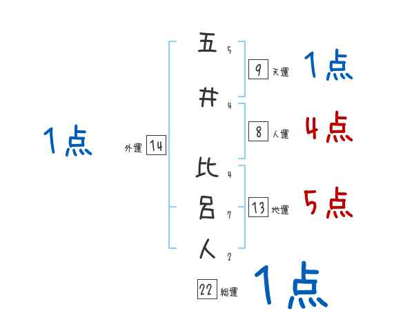 五井比呂人さんの画数の鑑定結果