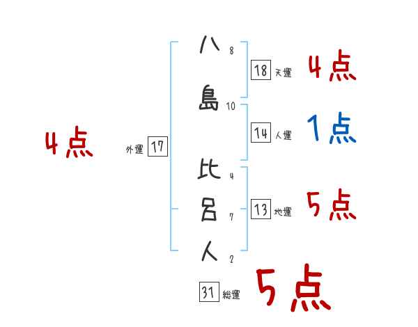 八島比呂人さんの画数の鑑定結果