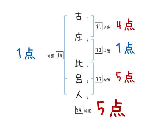 古庄比呂人さんの画数の鑑定結果