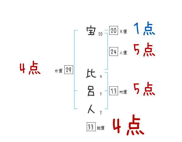 宝比呂人さんの画数の鑑定結果