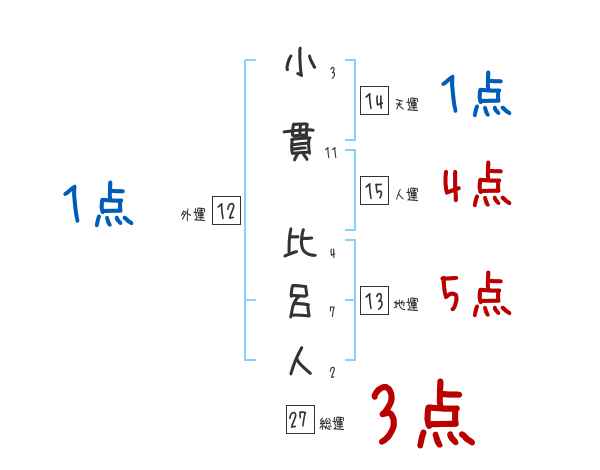 小貫比呂人さんの画数の鑑定結果