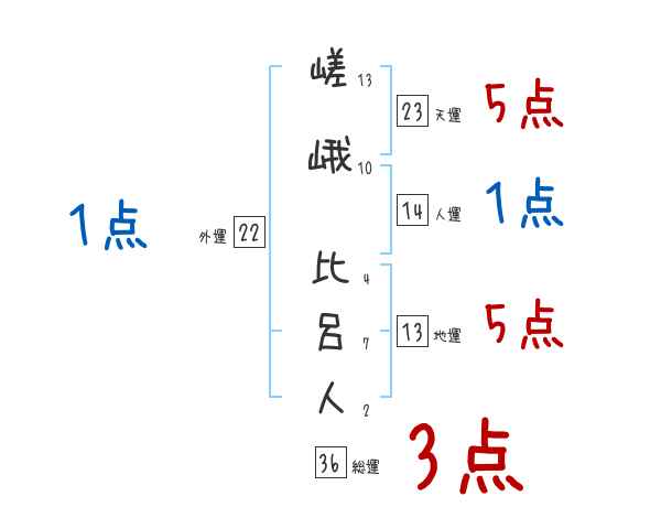 嵯峨比呂人さんの画数の鑑定結果
