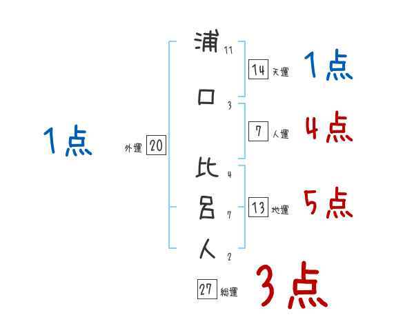 天運![]() | 浦口比呂人さんの天運は14画の1つ星!人に対して優しいがストレスを溜め込みがち。人間関係のトラブルを避けるよう気をつけましょう。 家系が持つ宿命的な運勢を表します。祖先から受け継いだ苗字ですので自分の力が及びません。家柄を象徴します。 |