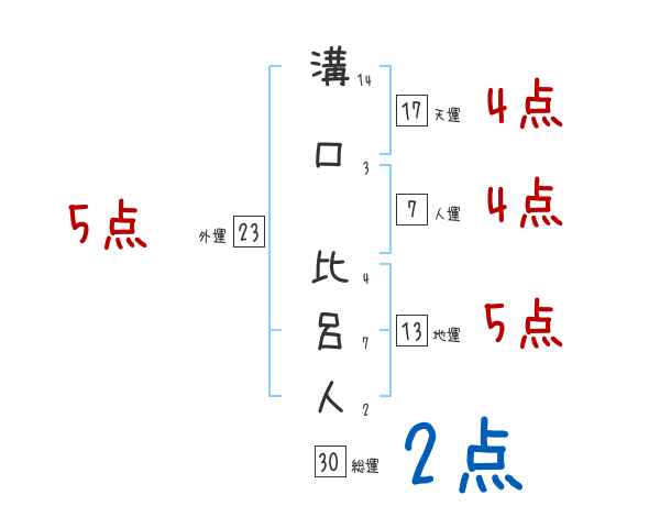 天運![]() | 溝口比呂人さんの天運は17画の4つ星!積極的な行動力。地位を気づき財産を手に入れる。純粋な心と直感力。 家系が持つ宿命的な運勢を表します。祖先から受け継いだ苗字ですので自分の力が及びません。家柄を象徴します。 |