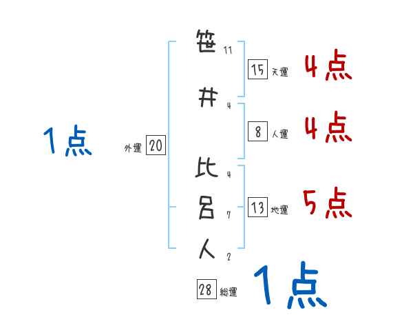 笹井比呂人さんの画数の鑑定結果