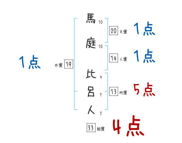 馬庭比呂人さんの画数の鑑定結果