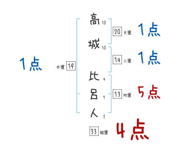高城比呂人さんの画数の鑑定結果