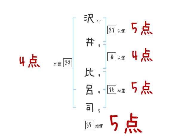 沢井比呂司さんの画数の鑑定結果