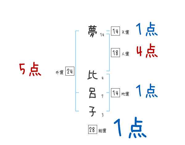 夢比呂子さんの画数の鑑定結果