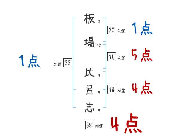 板場比呂志さんの画数の鑑定結果