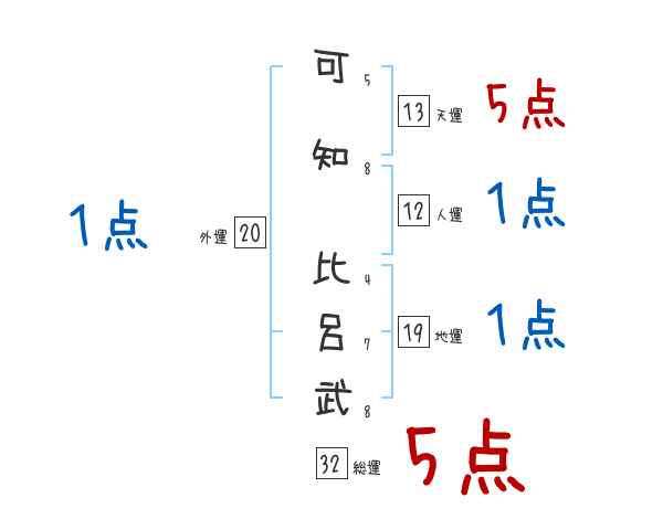 総運![]() | 可知比呂武さんの総運は32画の5つ星!柔軟性があり成功する。チャンスが多く金運が良い。 あなたの人生を表す1番重要な運勢です。生涯を通じて影響する総合運となり、主に50歳以降の晩年期に影響を及ぼします。 |