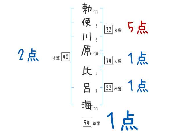 天運![]() | 勅使川原比呂海さんの天運は32画の5つ星!柔軟性があり成功する。チャンスが多く金運が良い。 家系が持つ宿命的な運勢を表します。祖先から受け継いだ苗字ですので自分の力が及びません。家柄を象徴します。 |