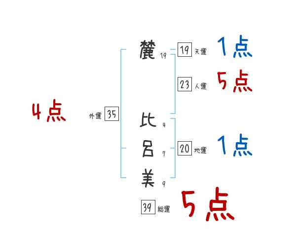 外運![]() | 麓比呂美さんの外運は35画の4つ星!温厚な性格で感受性が高い。穏和な性格で人望が厚い。 生活面を象徴する運勢です。外部から受ける影響力を表し、結婚運、家庭運や職場、環境への順応性を表します。 |