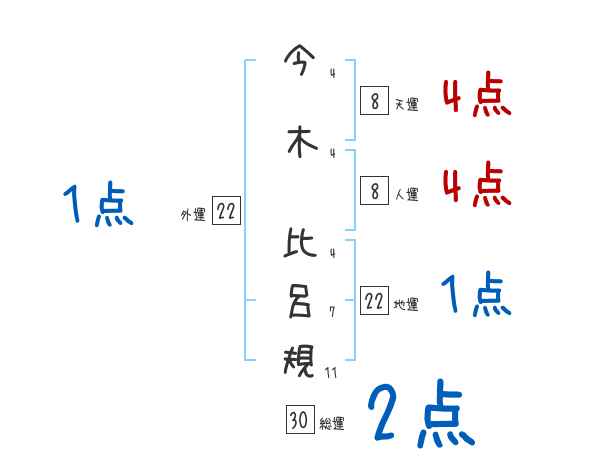 外運![]() | 今木比呂規さんの外運は22画の1つ星!努力することが苦手ないっぽう手先が器用。芸術性にも優れる。 生活面を象徴する運勢です。外部から受ける影響力を表し、結婚運、家庭運や職場、環境への順応性を表します。 |