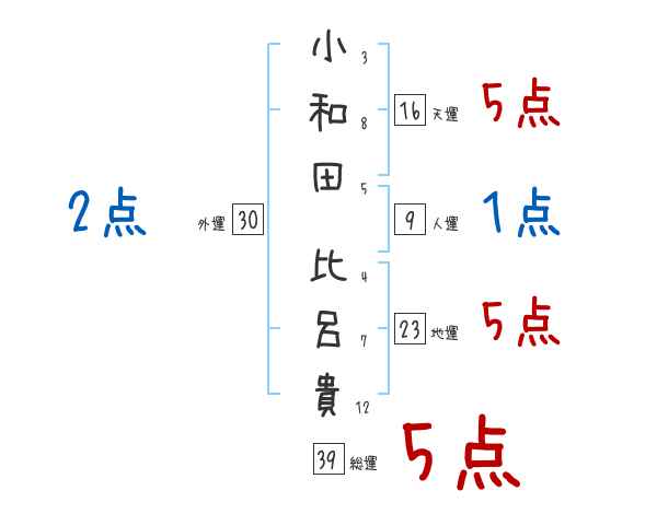 小和田比呂貴さんの画数の鑑定結果