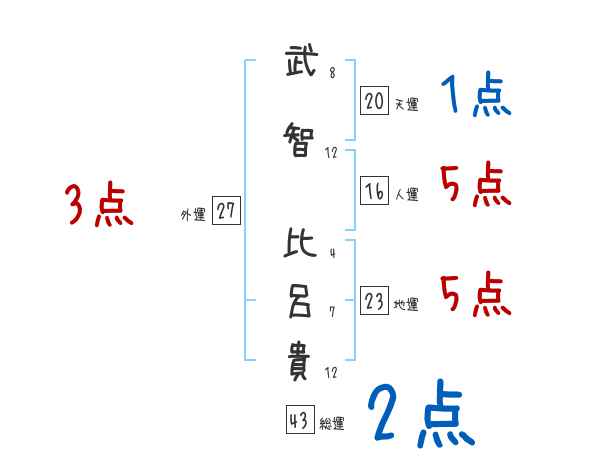 武智比呂貴さんの画数の鑑定結果
