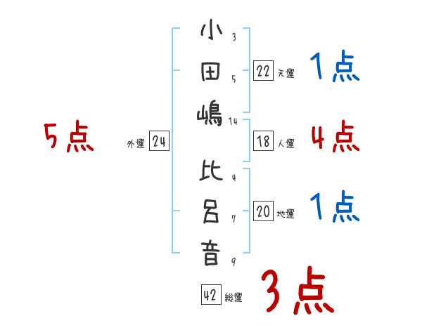 小田嶋比呂音さんの画数の鑑定結果