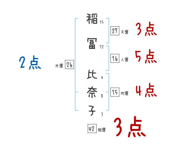 稲冨比奈子さんの画数の鑑定結果
