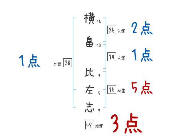 外運![]() | 横畠比左志さんの外運は28画の1つ星!家庭環境に注意。スポーツで活躍できる能力があるかも。 生活面を象徴する運勢です。外部から受ける影響力を表し、結婚運、家庭運や職場、環境への順応性を表します。 |