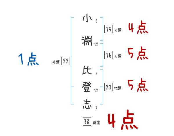 地運![]() | 小淵比登志さんの地運は23画の5つ星!想像力に優れ活力がある。一代で成功し名誉を手に入れる。 個性を表す基礎的な運勢です。性格形成や対人関係、行動力など家庭環境に影響されます。主に誕生してから20歳くらいまでの若年期の運勢を表します。 |