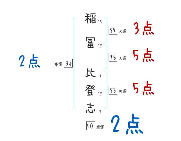 人運![]() | 稲冨比登志さんの人運は16画の5つ星!人望が厚く大きく発展する。逆転成功が見える。 性格や才能などを表す2番目に重要な運勢です。人間関係や協調性、社会的な成功に影響します。主に20歳から50歳ぐらいまでの中年期の運勢を表します。 |