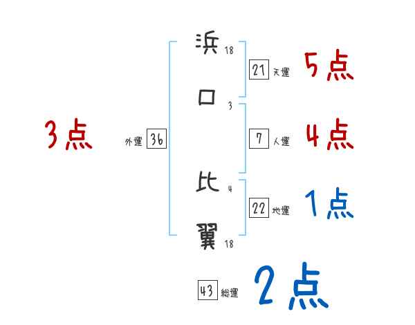浜口比翼さんの画数の鑑定結果