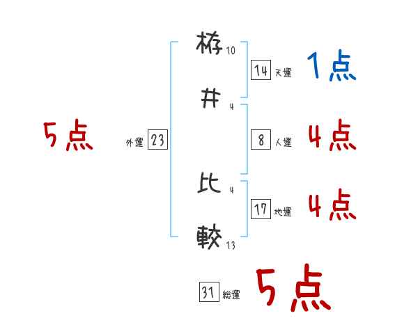 栫井比較さんの画数の鑑定結果