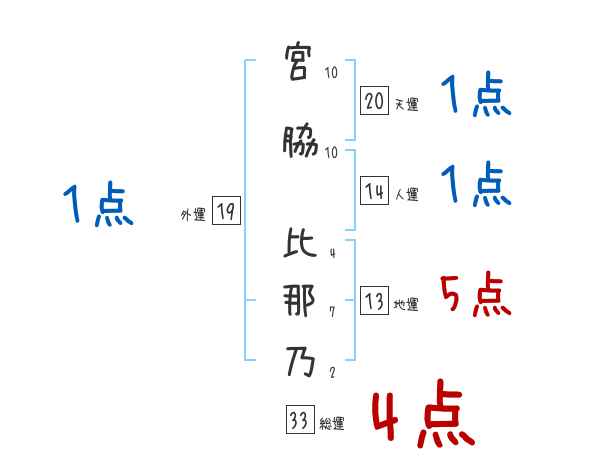 外運![]() | 宮脇比那乃さんの外運は19画の1つ星!優れた才能を持ちますが、協調性が足りないことも。周りの人と協力する事を意識しましょう。 生活面を象徴する運勢です。外部から受ける影響力を表し、結婚運、家庭運や職場、環境への順応性を表します。 |