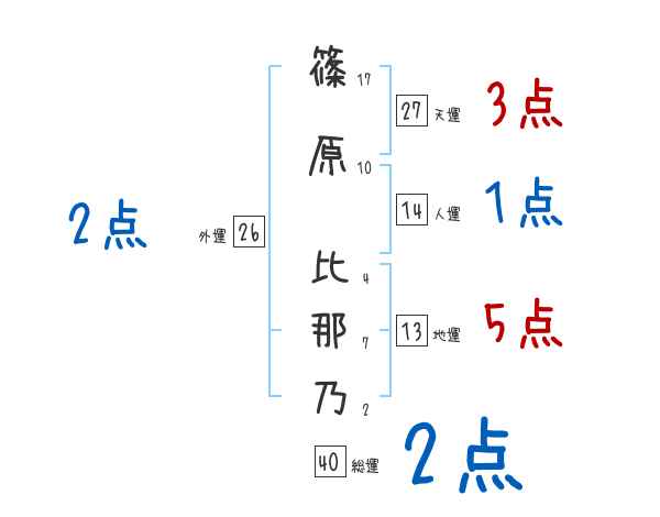 篠原比那乃さんの画数の鑑定結果