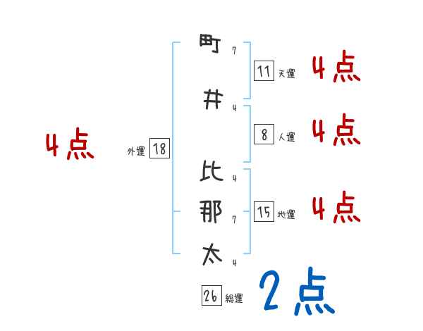 町井比那太さんの外運は18画の4つ星