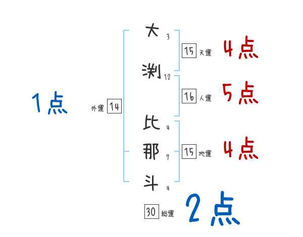 大渕比那斗さんの画数の鑑定結果